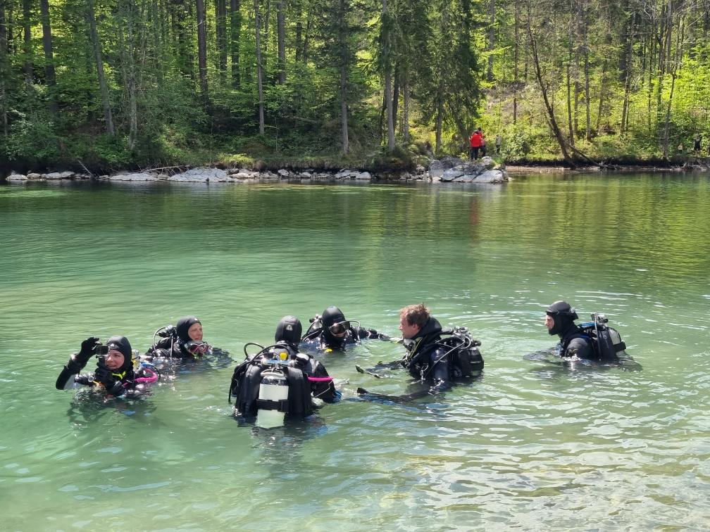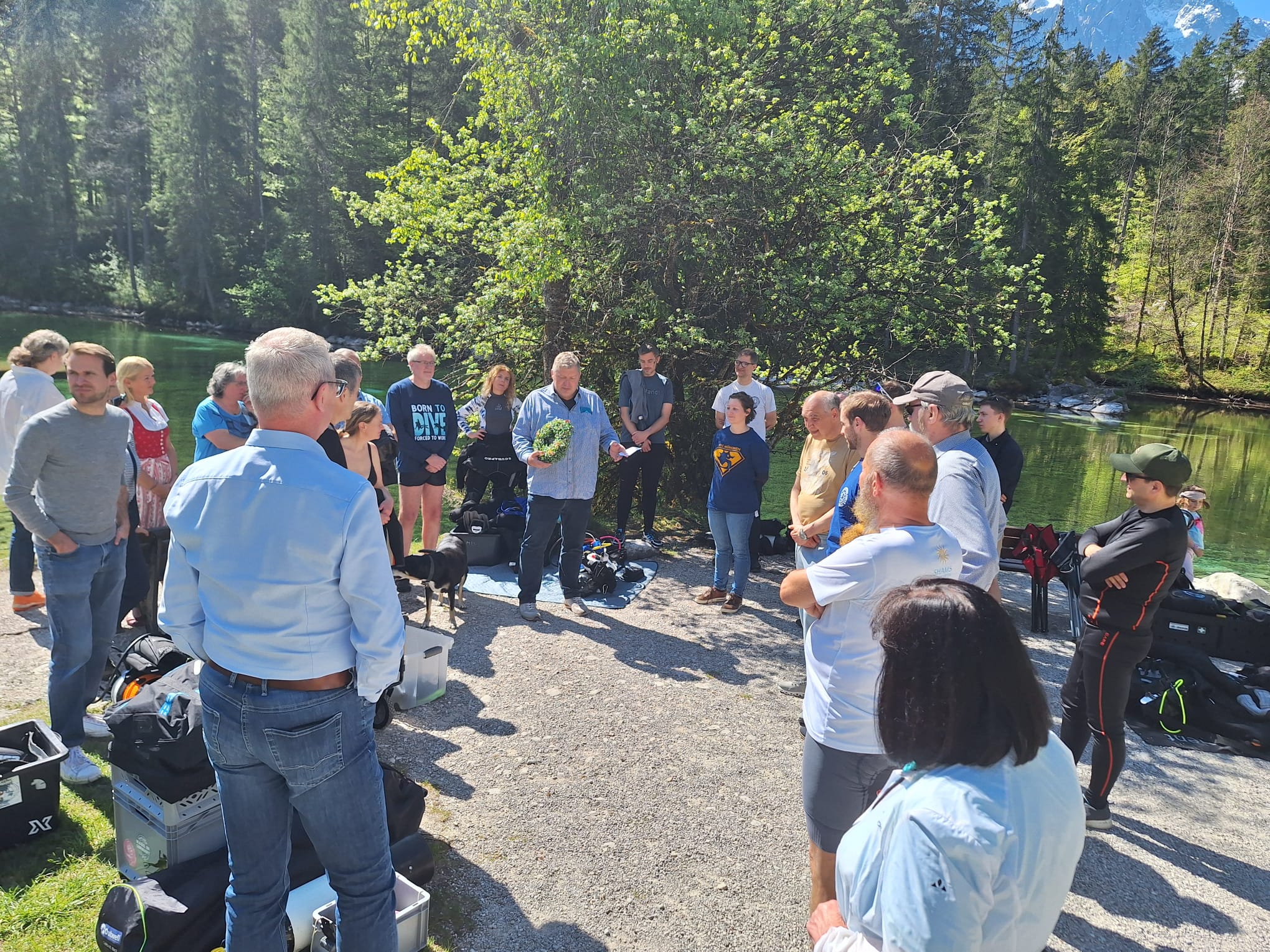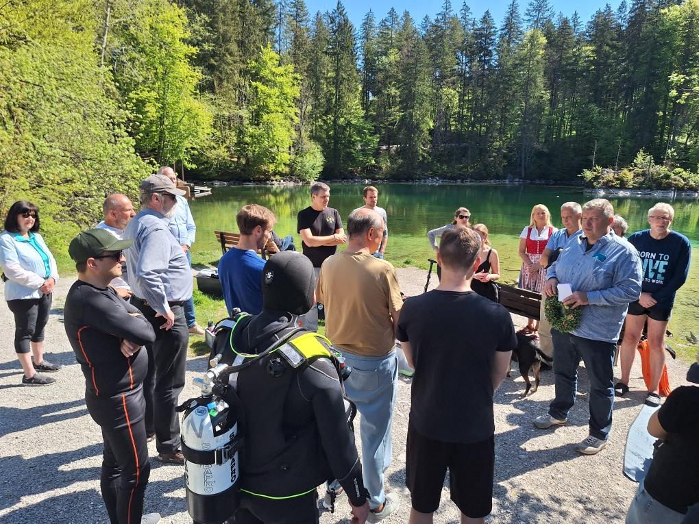 Herausragend war aber Eure Teilnahme, liebe Mitglieder. 20 Taucher und viele Nichttaucher haben den Weg nach Grainau gefunden und haben unterstützt. Die weiteste Anreise eines Tauchers war aus Wolfsburg. Apropos Taucher: Der See war wieder besonders klar und die Fische wieder besonders zutraulich und neugierig. Mit 10 Grad war er auch schon fast kuschelig warm – zumindest für die Trockentaucher, wobei die richtig Harten auch in Badehose im See geschwommen sind.