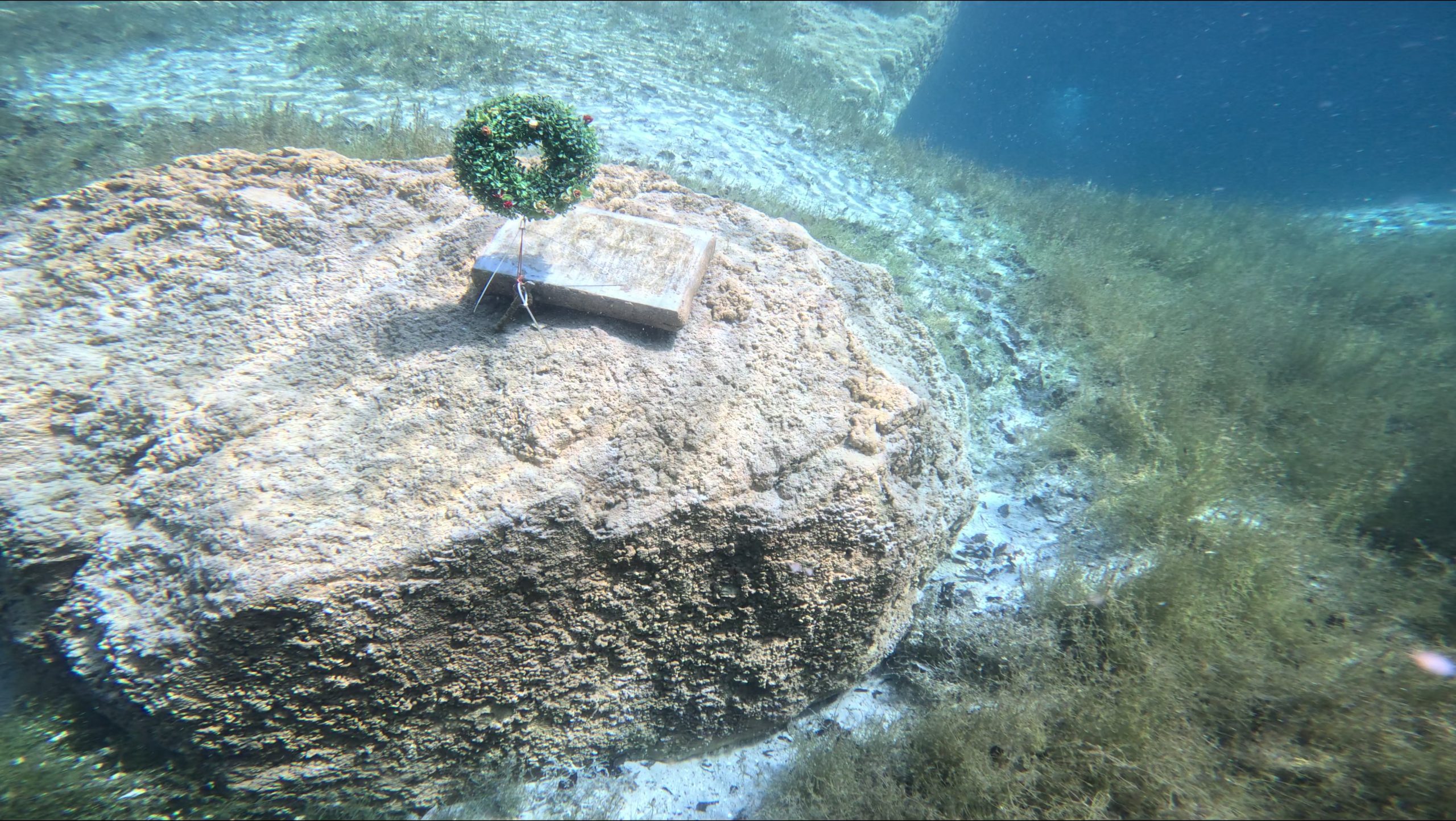 Nach Gedenken an die verstorbenen Clubkameraden wurde ein Kranz niedergelegt (besser: niedergebunden wegen Auftrieb) und die Jubiläumstafel zum 75-jährigen Vereinsjubiläum enthüllt und besichtigt.