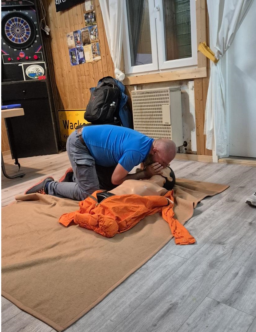 Selbstverständlich haben alle unsere Teilnehmer erfolgreich abgeschlossen und konnten ihre Kenntnisse unter Beweis stellen, insbesondere bei dem Versuch, die beiden Trainingspuppen wiederzubeleben mit Mund-zu-Mund-Beatmung, Herzdruckmassage und Defibrillatoreinsatz. Im Anschluss wurden unsere beiden Sauerstoffsysteme aufgebaut und getestet. Es ist wichtig, dass jeder diese bedienen kann, wir haben immer eines beim Tauchen dabei.