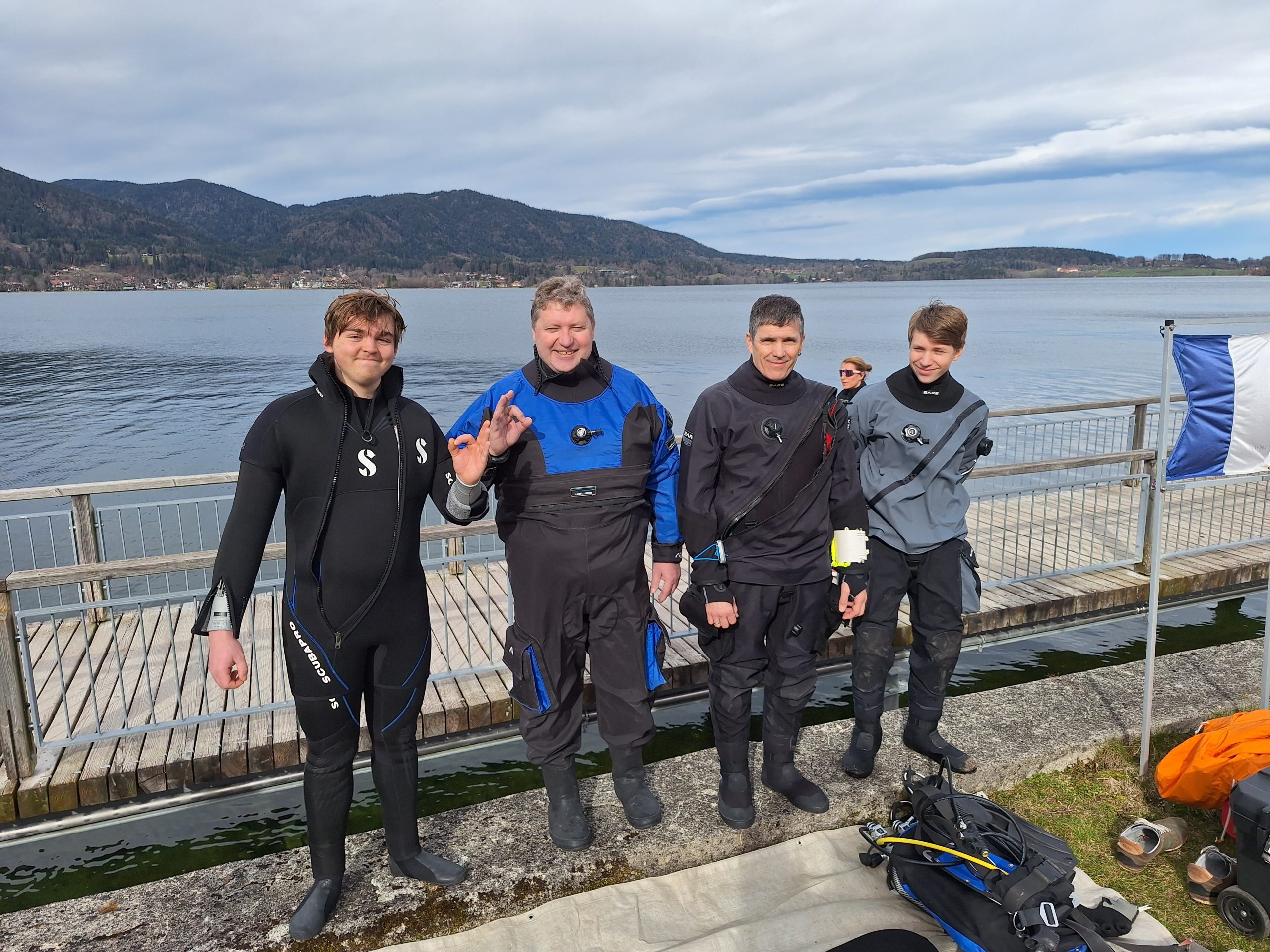 Hallo zusammen, bei herrlichem Wetter ging es zu Gerda und Eddy (Gerda’s Dive Shop) an den wunderschönen Tegernsee auf Ihr Grundstück direkt am See . Ursprünglich war ein Trocki-Event geplant (was aber auf den 1. und 7. April verschoben wurde), so dass ein Teilnehmer dann sogar nass tauchen gehen musste. Seinen Worten nach (sobald er wieder einigermaßen verständlich sprechen konnte) war das aber gar nicht so schlimm. Gerda machte ihr traditionelles Antauchen und wie immer konnte nach dem Tauchen gegrillt werden. Es gibt schlimmere Arten einen Tag zu verbringen :-) Beim Tauchen waren wir auch fleißig und haben komplexe Übungen gemacht Ventile unter kontrollierten Umgebungsbedingungen schließen (und auch wieder öffnen) Boje setzen Zusätzlich haben wir den See von etwas Müll befreit. Ein schöner Tag bei Gerda. Vielen Dank