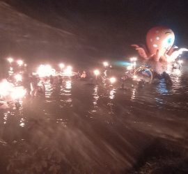 Liebe Mitglieder, am 26.10. zum 48-jährigem Geburtstag unserer Freunde beim TCO Rosenheim ging es mit ca. 100 Gleichgesinnten wieder zum Fackelschwimmen in den Inn. Mit einem Wort: Es war geil! Ok, das waren 3. Dank unermüdlichem Einsatz von Robert haben wir ein sehr schönes Boot gehabt. Nur knapp haben wir den Preis für die stärkste Teilnehmergruppe verpasst. Nächstes Mal klappt es. Eine wesentliche Verbesserung war, dass man/frau sich warm duschen könnte. Eine gute Neuerung. Wir kommen wieder!