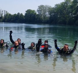 Liebe Mitglieder, wir freuen uns, dass wir am 18.06. am Echinger Weiher 9 Aspiranten in den Kreis der Bronzetaucher aufnehmen konnten. Bei herrlichstem Wetter und bester Verpflegung waren wir Samstag und Sonntag vor Ort und haben die Prüfungstauchgänge für den aktuellen Bronzekurs durchgeführt. Herzlichen Glückwunsch an: Kristin Rainer Felix Nico Julian Ole Severin Andreas Marcus Nach durchgeführter Tauchertaufe, bei der sie versprachen Neptun zu ehren, immer gut zu tarieren, dem Buddy beizustehen und nichts aus dem Wasser zu entnehmen wurden sie mit den Wassern der 7 Weltmeere, dem Sand der Strände und einem kräftigen Flossenschlag auf die Schulter zu Tauchern ernannt. Vielen Dank an die Helfer, die Verpflegungsmannschaft und die Ausbilder Poldi, Manni, Sebastian, Katharina und Gerhard. Allzeit gut Luft unseren neuen Tauchern Euer Vorstand