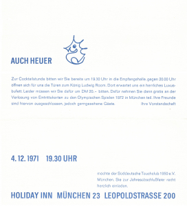 Die Gründung dieses Vereines, der „Unterwasserballabteilung des Süddeutschen Tauchclubs München 1950 e. V.“ – USTC genannt, wird im Clubrundschreiben vom 10.10. veröffentlicht.