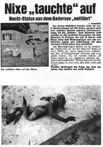 In der tz erscheint eine Meldung, dass die Nixe aus dem Badersee entführt und auf einer Wiese bei Garmisch aufgefunden wurde.