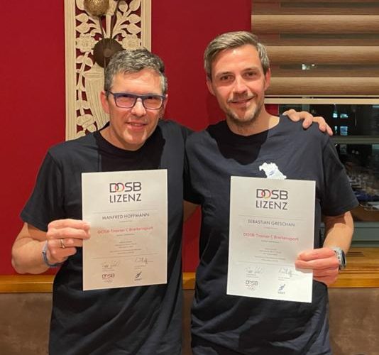 wir freuen uns, mitteilen zu dürfen, dass unsere Aspiranten Sebastian Greschan und Manfred Hoffmann (selbstverständlich) ihren Trainer-C-Lehrgang erfolgreich beendet haben und ab sofort die Lizenz haben, Euch zu trainieren.