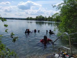 eine Abordnung von Tauchern hat sich aufgemacht zum Sundhäuser See zu einem Erkundungstauchgang.