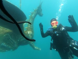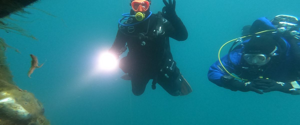 Der See ist super. Die Sicht war ok und es gibt viel zu entdecken. Ein Campingplatz mit Toiletten und Duschen ist dabei, ebenso eine Tauchschule. Es können auch Bungalows gemietet werden, aber die sind halt sehr ausgebucht. Weil er so schön ist, waren wir (Andreas, Nika, Biba, Gerhard) nicht die einzigen am See, aber die hunderte anderen Taucher haben sich gut verteilt. Wir fanden ein Plätzchen zum anrödeln und später sogar zum Grillen auf der Wiese vor dem See.