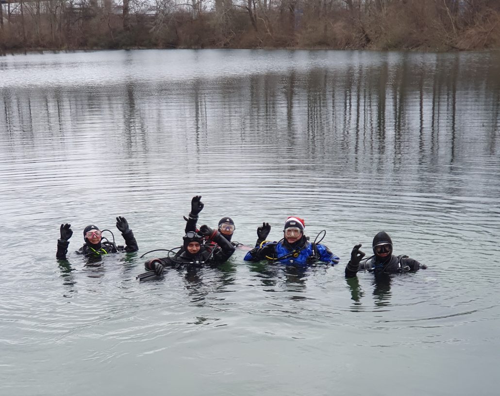 am Vormittag war es wieder soweit, es ging zum Weihnachtstauchen zum Echinger Weiher. Es gibt nichts Besseres als Vorbereitung für die festlichen Tage. 5 Wagemutige haben sich in die Fluten gestürzt bei herrlichstem Trockentaucherwetter mit Temperaturen knapp über dem Nullpunkt.